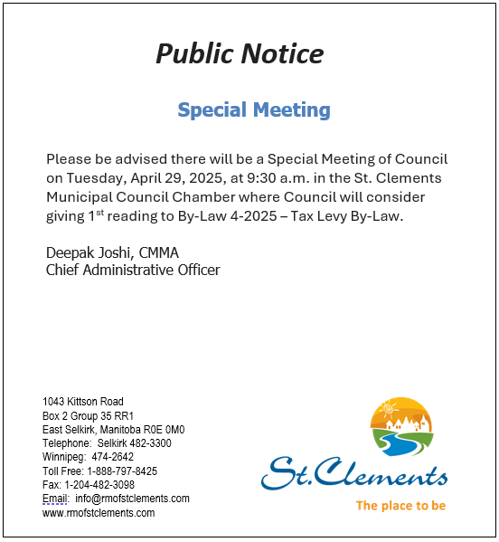 Public Notice – Special Meeting