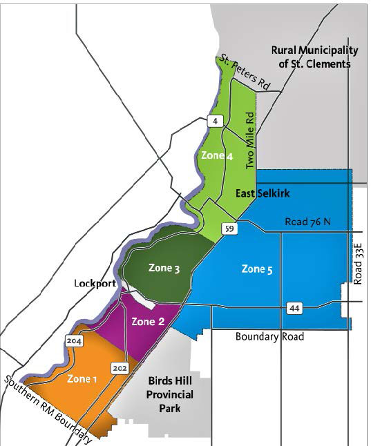 Southern portion of RM including Lockport, Narol, Gonor, East Selkirk, Ashfield, West Pine Ridge, West Garson and NE 59/44.